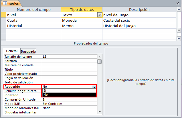 Access exigirá que se introduzca obligatoriamente algún dato de este campo